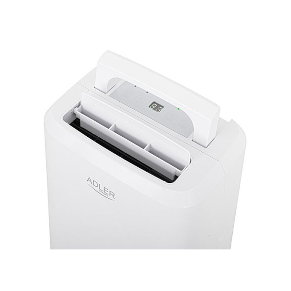 Adler 7861 je kompresorski razvlaževalec zraka s kapaciteto do 10 litrov vode na dan, zasnovan za učinkovito odstranjevanje vlage iz prostorov do 60 m³. Na voljo sta dva načina delovanja: