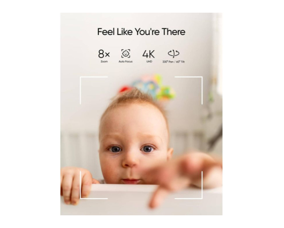 4K UHD + 8× zoom omogočata, da vidite vsak nasmeh ali če je otrok izgubil dudo. Jasna slika za vsako dragoceno priložnost.