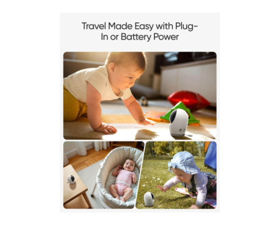 Enostavno postavite 5.000 mAh kamero kjer koli je vaš dojenček – brez vtičnice. Deluje nemoteno, tudi ob izpadu elektrike.