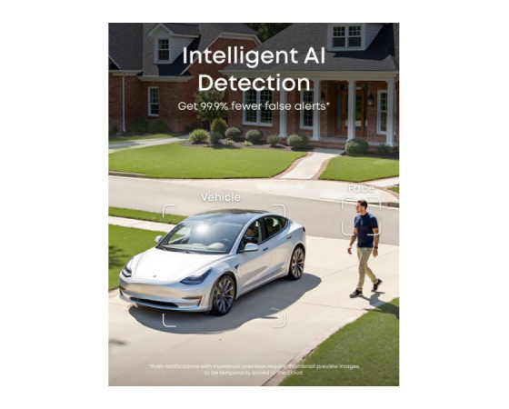 Samodejno razlikuje med ljudmi, hišnimi ljubljenčki in vozili, kar zmanjša lažna opozorila za 99 %. Tako prejmete obvestilo samo, kadar je to res pomembno.