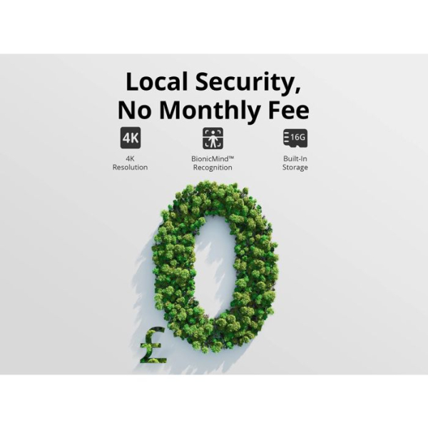 - Lokalna* razširljiva shramba: z naprednim šifriranjem in 16 GB vgrajenega pomnilnika, razširljivega do 16 TB, naša varnostna kamera eufy zagotavlja največjo varnost vaših podatkov, vse brez ponavljajočih se mesečnih stroškov.