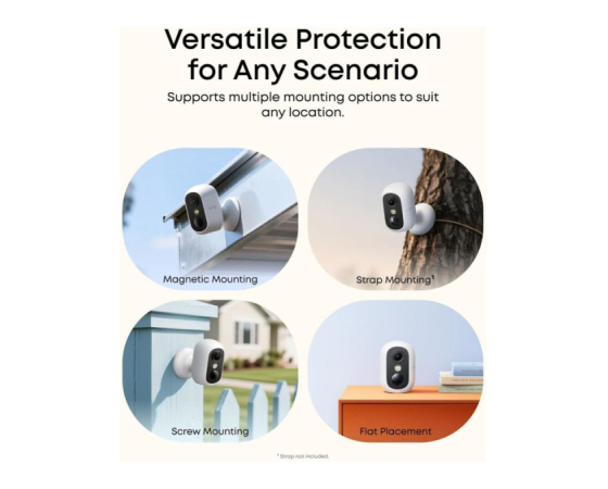Namesti se v nekaj sekundah — magnetno pritrdite, obesite, privijte ali postavite na katerokoli ravno površino. Ta kompaktna, brezžična kamera je z zaščito IP67 odporna na vremenske vplive in primerna za notranjo in zunanjo uporabo.