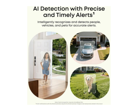 AI zazna ljudi, vozila, hišne ljubljenčke in območja aktivnosti. Prejemajte takojšnja opozorila iz notranje ali zunanje varnostne kamere in imejte vsak kotiček pod nadzorom.