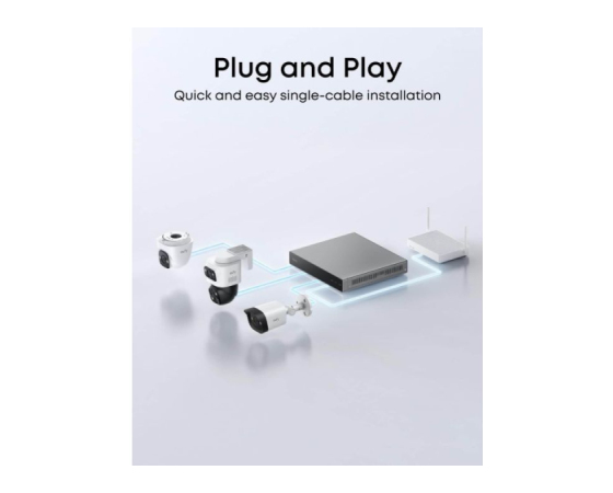 En sam kabel (Power over Ethernet) skrbi za napajanje in prenos podatkov za 24/7 snemanje, hitro povezavo in preprosto namestitev, ki zagotavlja neprekinjeno varnost.