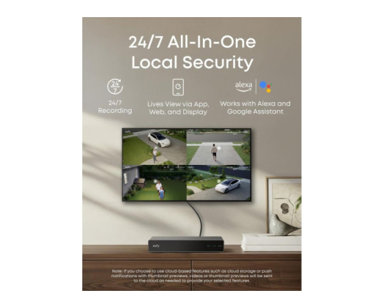 Razširljiva varnost, enostavna namestitev 8-kanalni nadzorni sistem, ki ga lahko enostavno razširite na 16 kanalov. Vključuje vnaprej nameščen 2 TB trdi disk (razširljiv do 16 TB) za 24/7 snemanje. Sistem plug & play z enim PoE kablom za napajanje in video omogoča enostavno uporabo ter brezhibno integracijo s kamerami eufy in pametnimi asistenti.