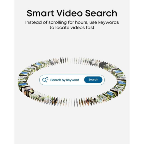 Brezplačno pametno iskanje videa Namesto da bi pregledovali vse posnetke, takoj poiščite, kar potrebujete, z iskanjem po ključnih besedah.