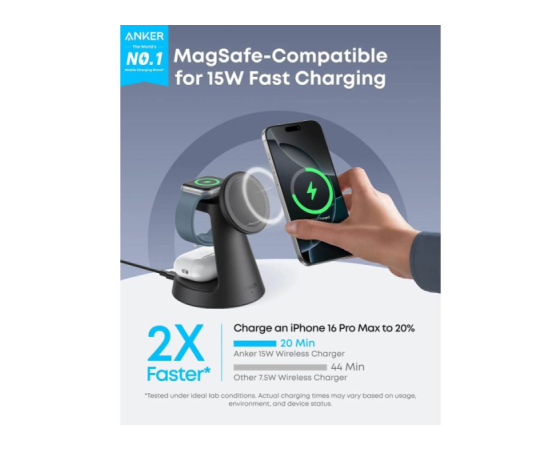 *Podatek temelji na polnjenju iPhone 16 Pro od 0 do 25 %, v primerjavi s 7.5W brezžičnim polnilnikom.