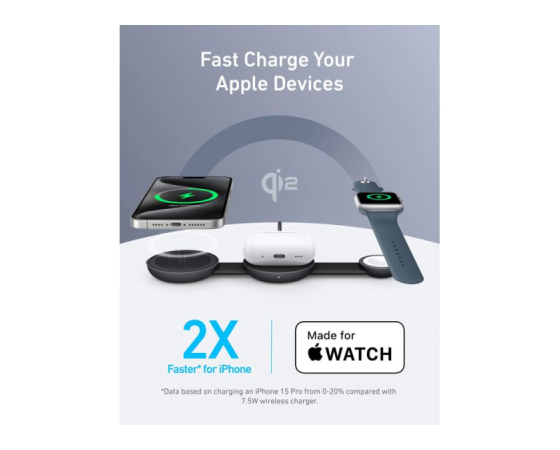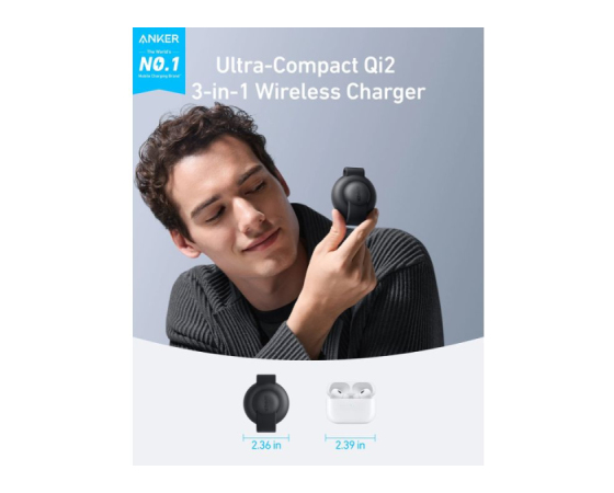 Izjemno majhen 3-v-1 Qi2 brezžični polnilnik