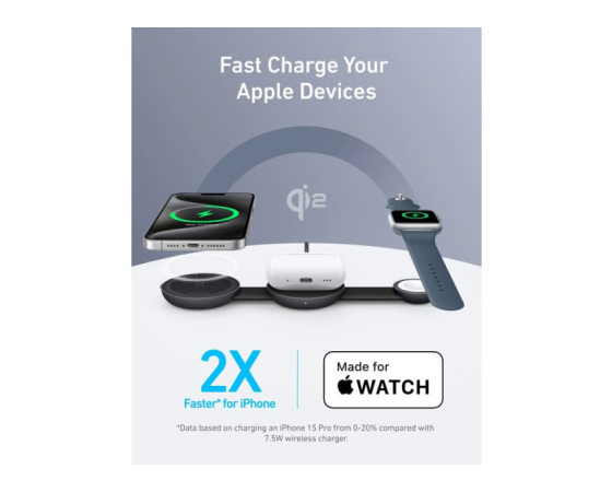 Izjemno majhen 3-v-1 Qi2 brezžični polnilnik