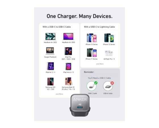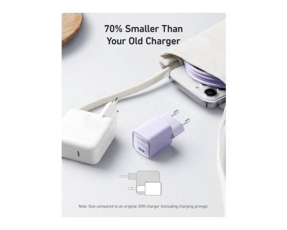 Opomba: Velikost v primerjavi z originalnim polnilnikom z močjo 30 W (brez vtičnic za polnjenje).
