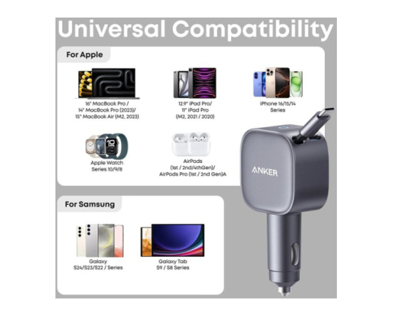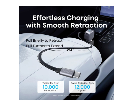 Zložljiv kabel brez zapletanja: Inovativno zasnovan 70 cm zložljiv kabel odpravlja nered v avtomobilu ter omogoča enostavno podaljšanje in pospravljanje po potrebi. Uživajte v brezskrbni uporabi brez zapletenih kablov – preprosto izvlecite za uporabo in povlecite nazaj za shranjevanje.