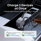Dvojno hitro polnjenje: S skupno izhodno močjo 75 W (USB-C do 45 W) lahko polnilnik hkrati napaja dve napravi – prenosnik, pametni telefon ali tablico. Hitreje napolnite baterijo in ostanite v koraku s svojim dinamičnim življenjskim slogom.
