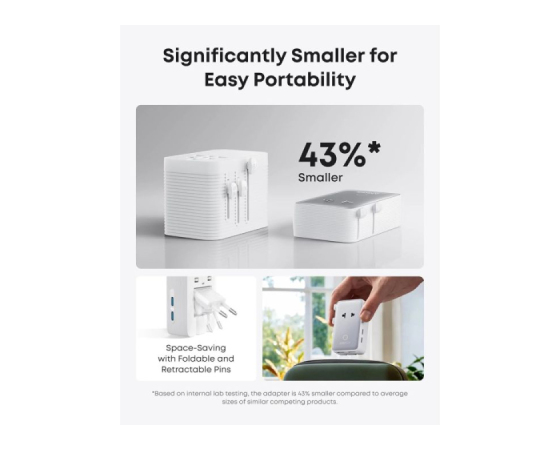 Izjemno kompaktna zasnova: Uživajte v več prostora v prtljagi z obliko, ki je za 43 % manjša od podobnih modelov. Vključuje zložljive in izvlečne zatiče za še bolj priročno prenašanje.
