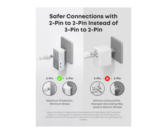 2-pin na 2-pin povezava: Uživajte v brezskrbni uporabi zahvaljujoč varni zasnovi 2-pin na 2-pin, ki preprečuje električne šoke in poskrbi za varno potovanje.