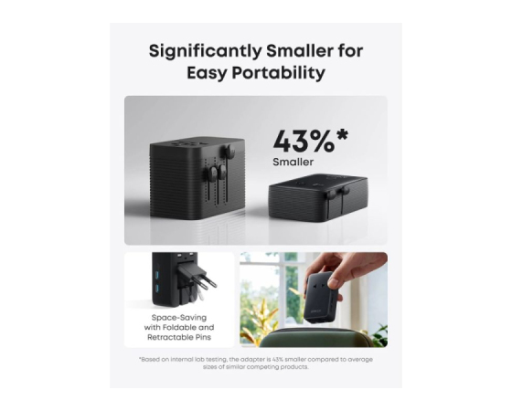 Izjemno kompaktna zasnova: Uživajte v več prostora v prtljagi z obliko, ki je za 43 % manjša od podobnih modelov. Vključuje zložljive in izvlečne zatiče za še bolj priročno prenašanje.