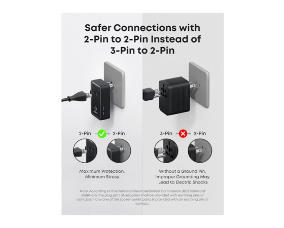 2-pin na 2-pin povezava: Uživajte v brezskrbni uporabi zahvaljujoč varni zasnovi 2-pin na 2-pin, ki preprečuje električne šoke in poskrbi za varno potovanje.