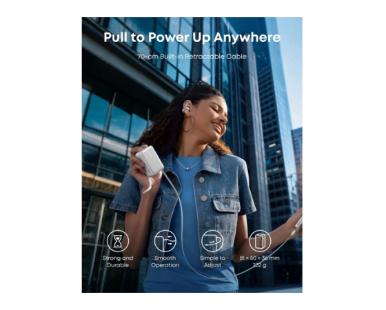 Anker Nano Power Bank (10K, 45W, z vgrajenim izvlečnim USB-C kablom), vodnik za začetek uporabe, 24-mesečna garancija , prijazna podpora za stranke