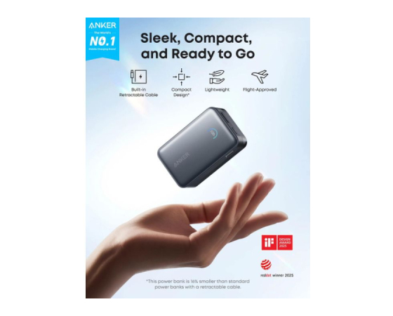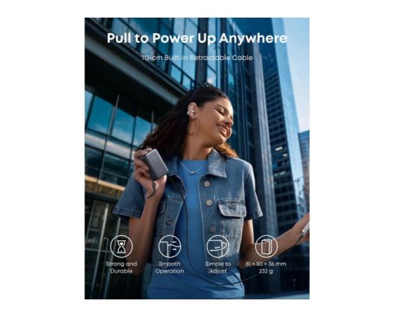 Oblikovan za življenje na poti, je ta power bank za 16 % manjši od standardnih modelov z izvlečnim kablom, kar olajša prenašanje. Poleg tega je odobren za letalske prevoze.