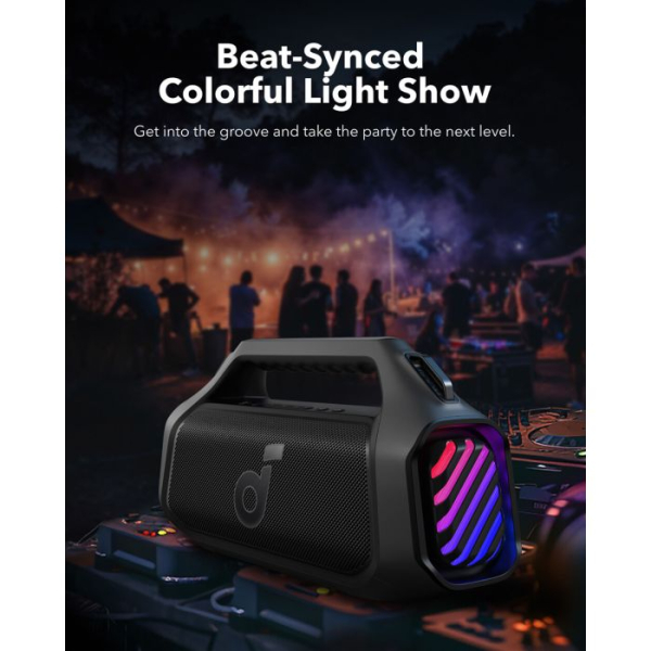 Vaš zvok, vaša pot: Zunanji zvočnik Boom 2 Plus ima prilagodljiv pro EQ, ki vam pomaga najti popoln zvok za vsako pesem ali vzdušje. Z PartyCast 2.0 lahko povežete do 100+ zvočnikov in popeljete zabavo na višjo raven.