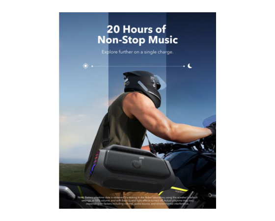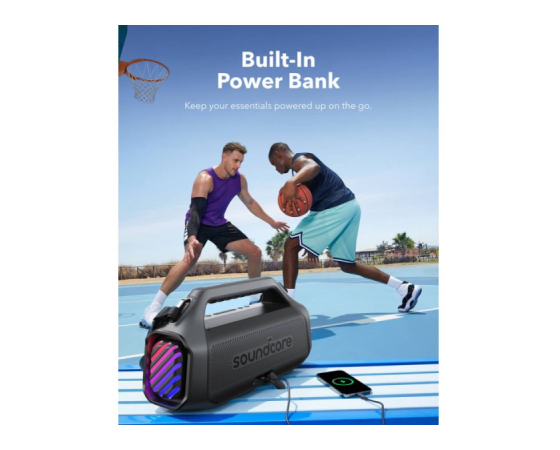 30W hitro polnjenje in vgrajena prenosna baterija: Združite z 30W polnilnikom, da popolnoma napolnite zunanji zvočnik Boom 2 Plus v samo 3 urah in predvajajte glasbo 20 ur. Z vgrajeno prenosno baterijo lahko napolnite telefon in druge potrebščine z 10W, kjerkoli ste. (Čas predvajanja se lahko razlikuje glede na raven glasnosti in vsebino predvajanja).