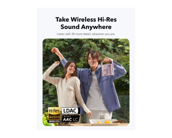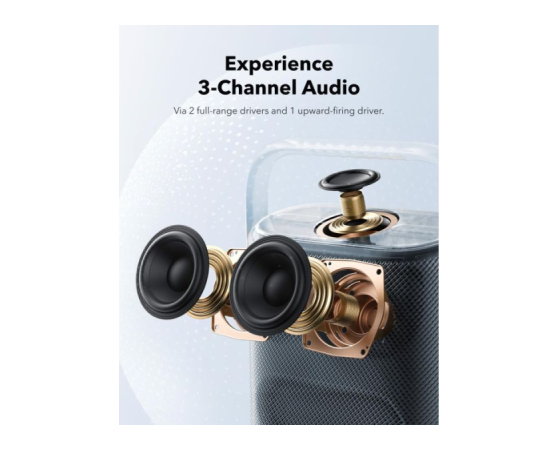 algoritem soundcore pretvori stereo zvok v 3-kanalni prostorski zvok za izjemno poglobljeno izkušnjo.