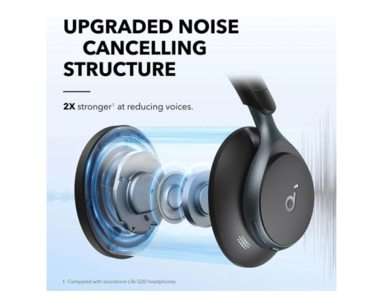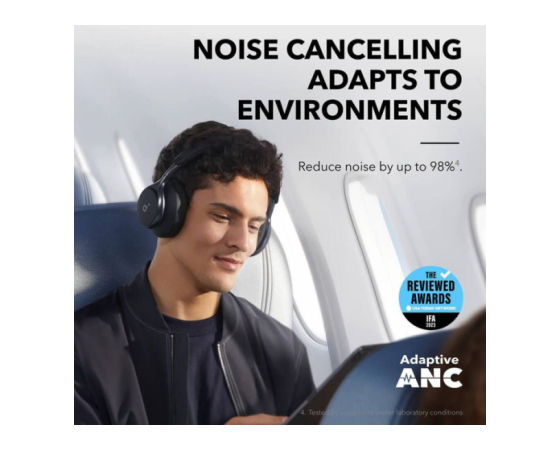 da bi zagotovili popolno koncentracijo na prometnih cestah, imamo zdaj popolne brezžične slušalke za vas: Space One zaznamuje zatiranje srednje in visokofrekvenčnih tonov z dvakratno visoko* izničitvijo glasu. *V primerjavi s slušalkami Soundcore Q30. - Odpravljanje hrupa do 98 %*: