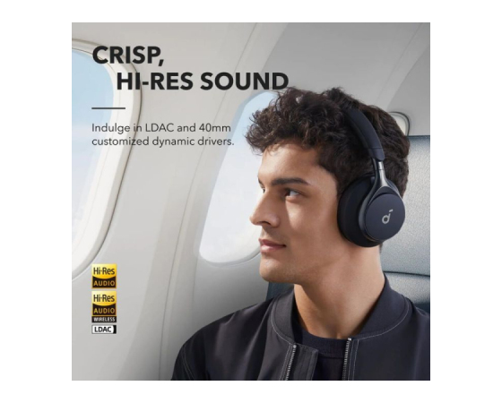 prilagojeni 40 mm dinamični zvočni gonilniki Space One podpirajo LDAC za brezžični zvok visoke ločljivosti in zagotavljajo trikrat večjo natančnost v primerjavi s standardnimi kodeki Bluetooth za podrobno poslušanje – brez prepletenih kablov. - 40 ur predvajanja ANC: