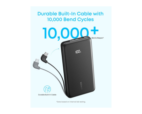 Kaj prejmete: Anker Zolo Power Bank (10K, 22,5 W, z vgrajenim USB-C kablom), uporabniški vodič.