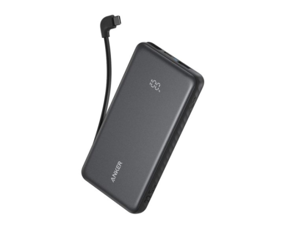 Anker Zolo Powerbank 10000 mAh, 22,5W z vgrajenim USB-C kablom, črn