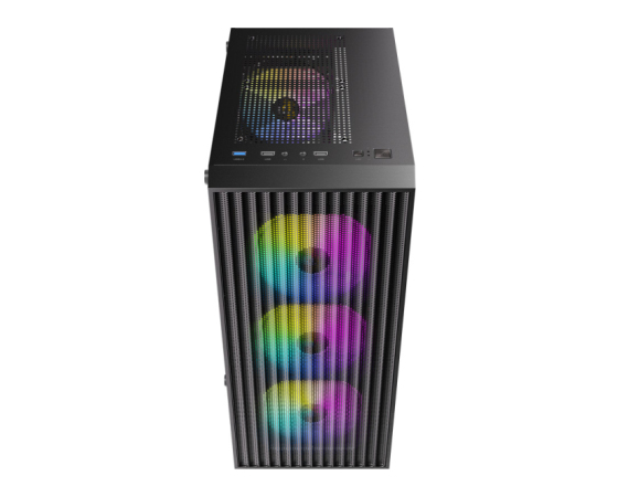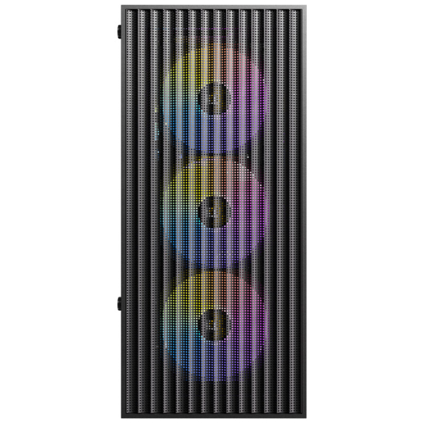 | Ventilator: | Spredaj: 3x 120 (priloženo FRGB) / 2x 140 mm Zgoraj: 2x 120 mm Napajanje: 2x 120 mm Zadaj: 1x 120 mm (priloženo FRGB) |