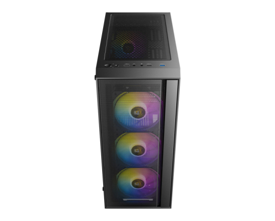 | Ventilator: | Spredaj: 3x 120 (priloženo ARGB) / 2x 140 mm Zgoraj: 2x 120 mm Napajanje: 2x 120 mm Zadaj: 1x 120 mm (priloženo ARGB) |