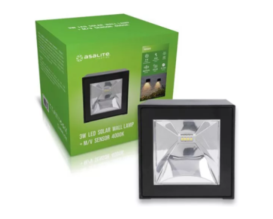 Asalite LED solarna stenska svetilka 3W 4000K lahko poleg 3W moči doseže tudi svetilnost 200 lumnov. Osvetli prostor lahko do 120°, zato je optimalna izbira za osvetlitev zunanjih prostorov našega bivalnega okolja (dvorišča, terase, dovozi itd.).