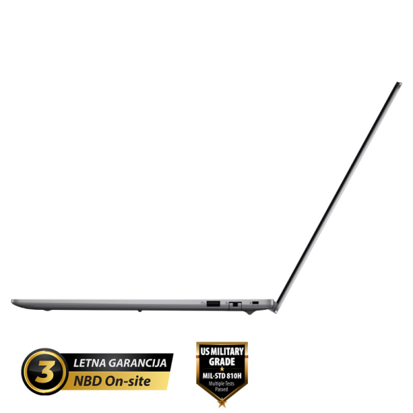 ASUS ExpertBook P3 je zasnovan z mislijo na udobje in produktivnost uporabnika. Strateška postavitev vhodno/izhodnih vrat na levi strani naprave omogoča nemoteno gibanje miške, kar ustvarja urejen delovni prostor, ki izboljšuje uporabniško izkušnjo.
