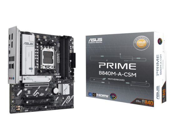 Matične plošče serije ASUS Prime so strokovno zasnovane, da sprostijo polni potencial procesorjev serije AMD Ryzen 9000. Matična plošča PRIME B840M-A-CSM uporabnikom in izdelovalcem osebnih računalnikov ponuja vrsto optimizacij delovanja prek intuitivne programske in vdelane programske opreme. Zasnovan je tako, da je pripravljen za napredni računalnik z umetno inteligenco in ponuja moč in povezljivost, potrebno za zahtevne aplikacije z umetno inteligenco.