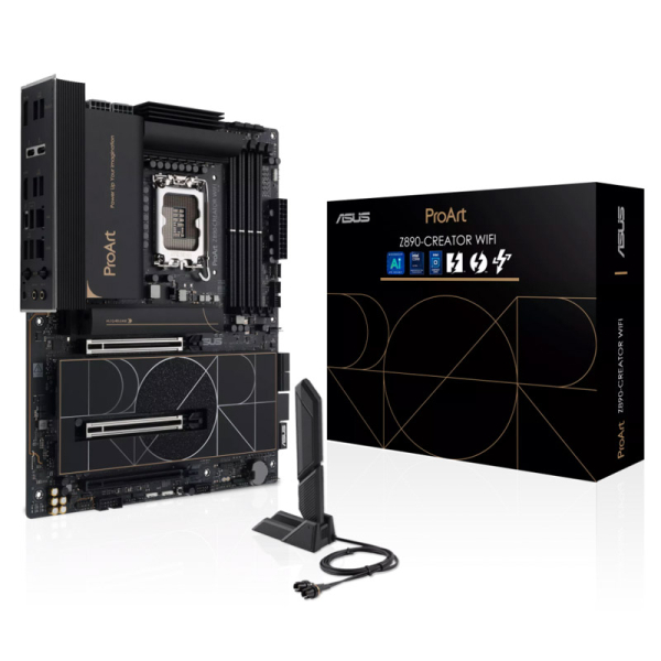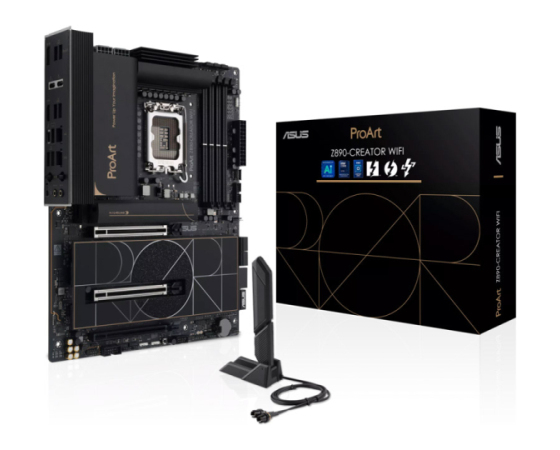 ProArt Z890-CREATOR WIFI omogoča ustvarjalcem povečanje zmogljivosti najnovejših procesorjev Intel® Core™ Ultra (serija 2) s 16+1+2+2 napajalnimi stopnjami, režami DDR5, PCIe® 5.0 in bliskovito hitro povezljivostjo, vključno z dvojnim Thunderbolt 5, 10G in 2.5G Ethernetom ter WiFi 7.