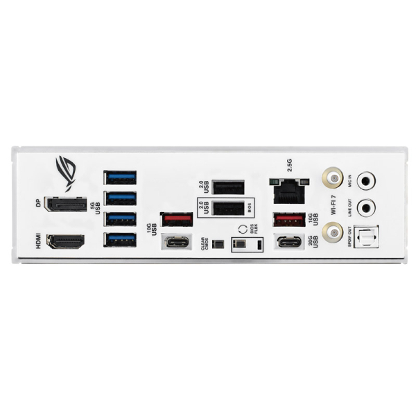 | Zunanji konektorji: | 1x USB 20Gbps (USB-C) 3x USB 10Gbps (2x USB-A, 1x USB-C) 4x USB 5Gbps (USB-A) 2x USB 2.0 (USB-A) 1x DisplayPort 1x HDMI 1x Wi-Fi modul 1x Intel 2.5Gb Ethernet 2x avdio priključka 1x optični S/PDIF izhod 1x BIOS FlashBack gumb 1x Clear CMOS gumb |