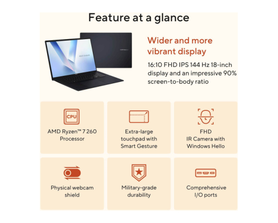 ASUS Vivobook 18 M1807HA-S8022W Ryzen 7 260/32GB/SSD 1TB/18,0" WUXGA IPS-level 144Hz /BL KEY/W11Home