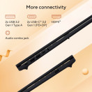 Priključki: 2x USB 3.2 Gen1 Type-C z DP in napajanjem PD (podatki do 5Gbps), 2x USB 3.2 Gen1 (do 5Gbps), 1x HDMI 2.1