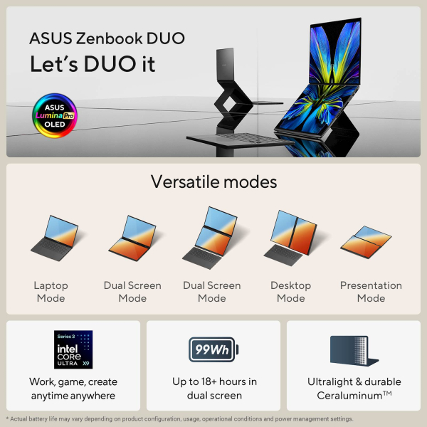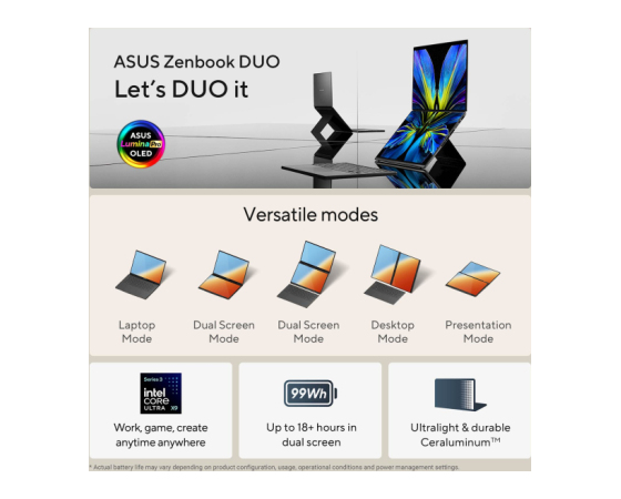 ASUS Zenbook Duo UX8407AA-SN094X Intel Core Ultra X9 388H/32GB/SSD2TB/2x 14" 3K OLED/W11Pro