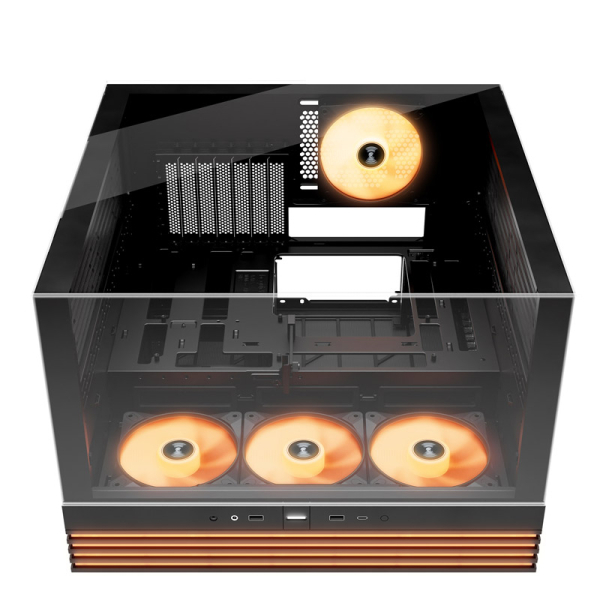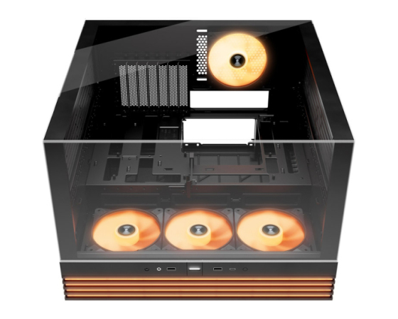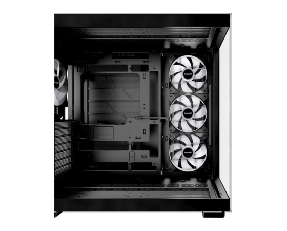 - Popolnoma zastekljena sprednja in stranska plošča za osupljiv panoramski pogled na vse vaše računalniške komponente