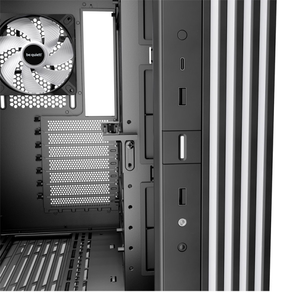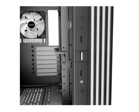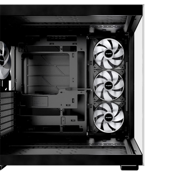 | Ventilator: | nameščen: ob strani: 3x Silent Wings LX Reversed 120 mm PWM črni zadaj: 1x Light Wings LX 120 mm PWM črni možnost vgradnje: zgoraj: 2x 140 / 3x 120 mm ob strani: 3x 120 mm zadaj: 1x 120 mm spodaj: 2x 140 / 3x 120 mm možnost vgradnje vodnega hlajenja: zgoraj: 120 / 240 / 360 mm ob strani: 120 / 240 mm zadaj: 120 mm spodaj: 120 / 240 / 360 mm