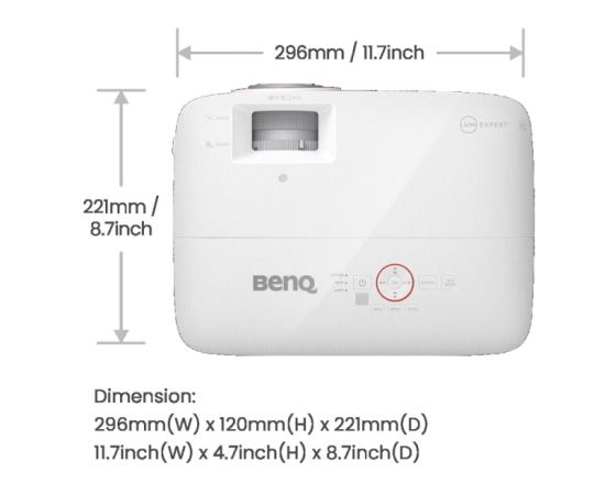 1,2-kratna povečava poveča razpoložljiv prostor z vrsto projekcijskih razdalj za zabavo na velikem zaslonu brez težav z zapleteno namestitvijo.