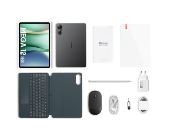 Blackview MEGA 12 12,2'' 12+256GB 5G, priložen ovitek s tipkovnico in miško + pisalo, siv