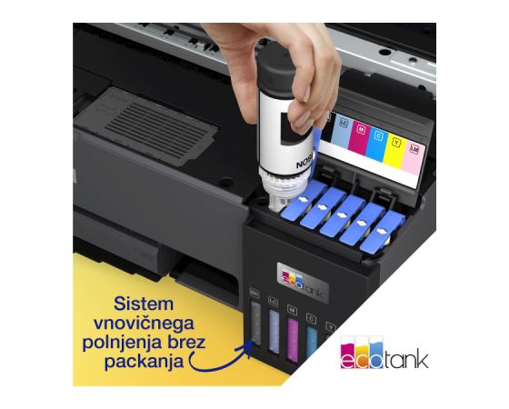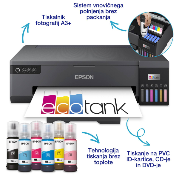 Priložena črnila: Šest posameznih 70-ml stekleničk (črna, cijan, rumena, magenta, svetla cijan, svetla magenta) ,