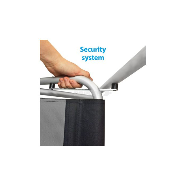 Režiserski stol z zložljivim ogrodjem iz anodiziranega aluminija. Trpežna prevleka je izdelana iz nedrsečega poliestra. Sedež, naslonjalo in nasloni za roke so oblazinjeni za večje udobje. Opremljen je z varnostnim mehanizmom za zlaganje.