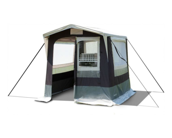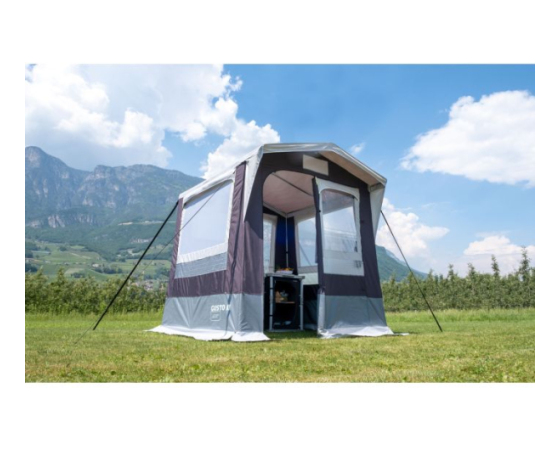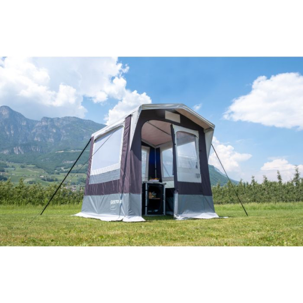 Šotor za kuhanje z dvokapno streho.