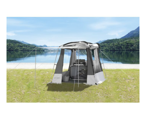Kuhinjski šotor Dinery je idealna rešitev za vse, ki iščete priročen in zanesljiv prostor za kuhanje na prostem. Ta šotor je zasnovan za ljubitelje kampiranja, piknikov in vrtnih zabav, saj zagotavlja zaščiteno in funkcionalno okolje za pripravo in uživanje v vaših najljubših jedeh.
