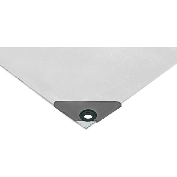 PE zaščitna ponjava, laminirana na obeh straneh. Ojačani robovi z notranjo vrvico in dodatno ojačani vogali. Nerjaveče kovinske zanke so nameščene po vseh straneh. Na voljo v dveh gramaturah materiala.