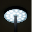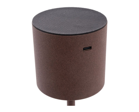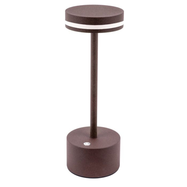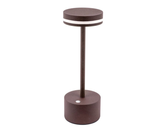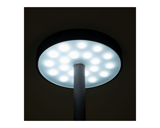 Prenosna polnilna namizna svetilka za zunanjo uporabo z modernim dizajnom in profesionalnim videzom. Nudi prijetno svetlobo zahvaljujoč toplo beli LED osvetlitvi. Opremljena je z nastavitvijo intenzivnosti svetlobe in elegantnim kovinskim senčnikom. Vgrajena litij-ionska baterija omogoča polnjenje kadarkoli preko priloženega USB kabla.