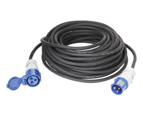 Priključni podaljšek CEE/CEE z gumijastim plaščem. Primeren za napetost 230 V / 16 A.